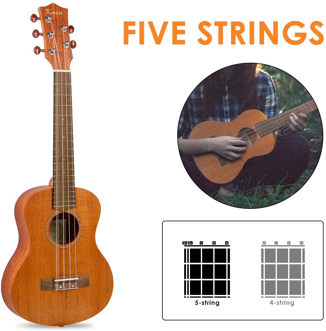 Size : Tenor 5 String TOP : Solid Mahogany Back & Side : Mahogany Neck : Mahogany Fingerborad : Walnut Headstock : Slotted Strings : Aquila Tuning:Low-G G C E A |