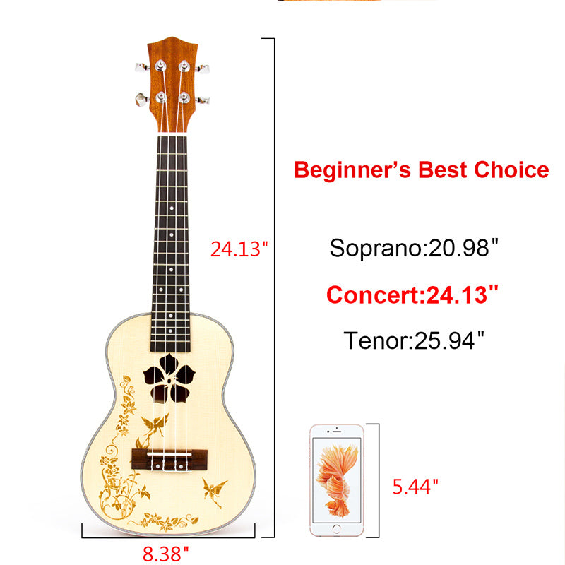 Ukulele Concert Solid Spruce Ukelele 23 Inch 18 Frets 4 String Hawai Guitar