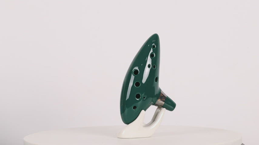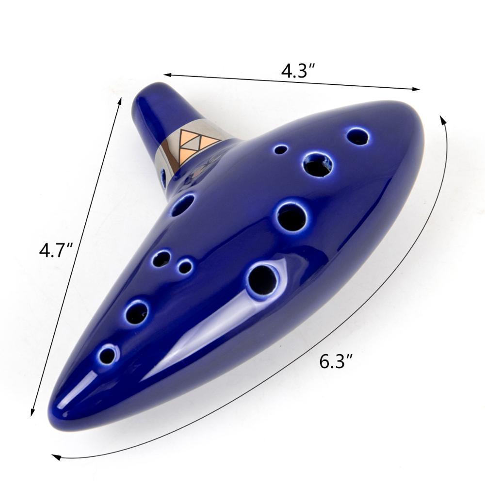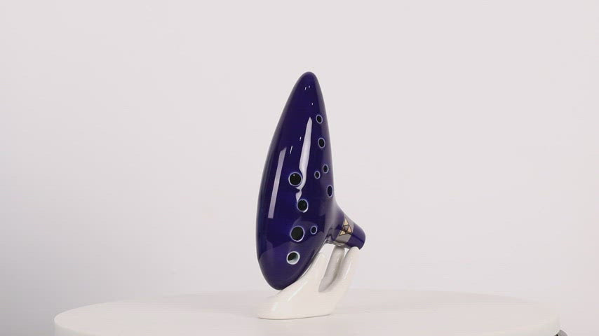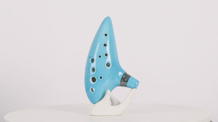 Our 12 Hole Ceramic Ocarina is finely glazed in a beautiful color, detailed with a metallic silver band and gold Triforce logo;